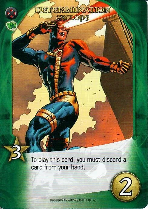 Cyclops cards are powerful for their cost, but in return, they force you to discard cards. There’s a neat internal here. The card Unending Energy returns to your hand if it would be discarded. There’s no limit to the number of times that this effect can be activated in a given turn. Chuck it again and again to power up his two cards that require a discard: Optic Blast and Determination. Cyclops’s ultimate veers away from this discard theme. X-Men United gains +2 attack for every other X-Men hero you’ve played during your turn. This card starts with an already pretty impressive attack value of 6, so you’re sure to get some kills with it, without even having to build around it too much.