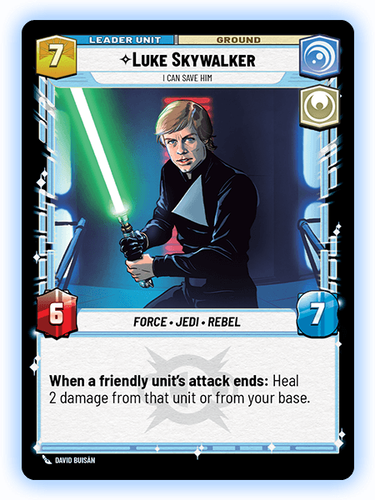 Along with the new token types, the Support keyword will also be making its debut. You can see this on the Leia Organa card shown above. When a card with Support is played, you may attack with another unit, which gains the Support card’s abilities. Which means that, if you play Leia Organa, you can then attack with another unit which gains her “On Attack” ability to deal 1 damage to itself, then heal 2 damage from your base.